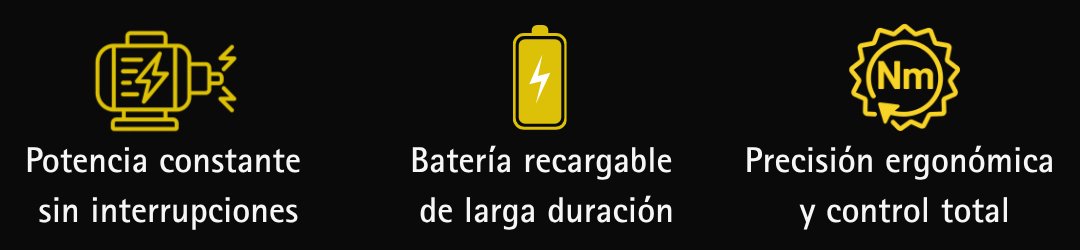 Con torque máximo de 3 Nm y velocidad de 200 – 220 rpm, trabaja sin pausas ni esfuerzo.